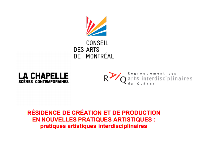 La résidence de création-production en nouvelles pratiques artistiques offre à un organisme ou à un collectif d’artistes l’occasion de poursuivre la création d’une œuvre interdisciplinaire et d’en réaliser la production à La Chapelle Scènes contemporaines et dans les studios du Conseil des arts de Montréal. L’œuvre proposée doit avoir déjà fait l’objet d’une première étape de recherche et/ou de […]