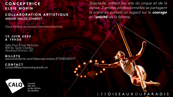 Les Oiseaux Du Paradis présenteront le nouveau spectacle LIEBEROSA, le 10 juin prochain à 19h30 à la salle Paul-Émile Meloche de Vaudreuil-Dorion.